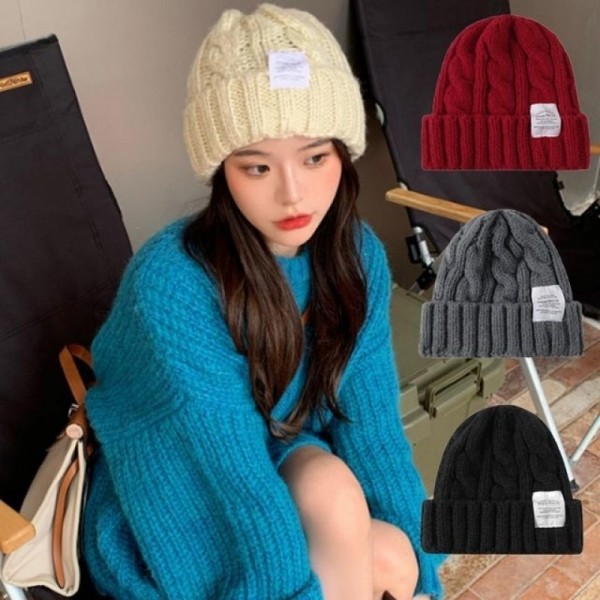 방한 겨울 여성 데일리 꽈배기 무지 니트 비니