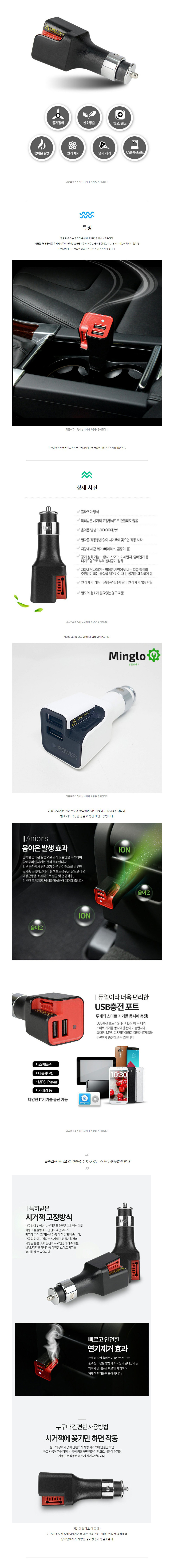 담배냄새제거 음이온 차량용 공기청정기 듀얼USB충전