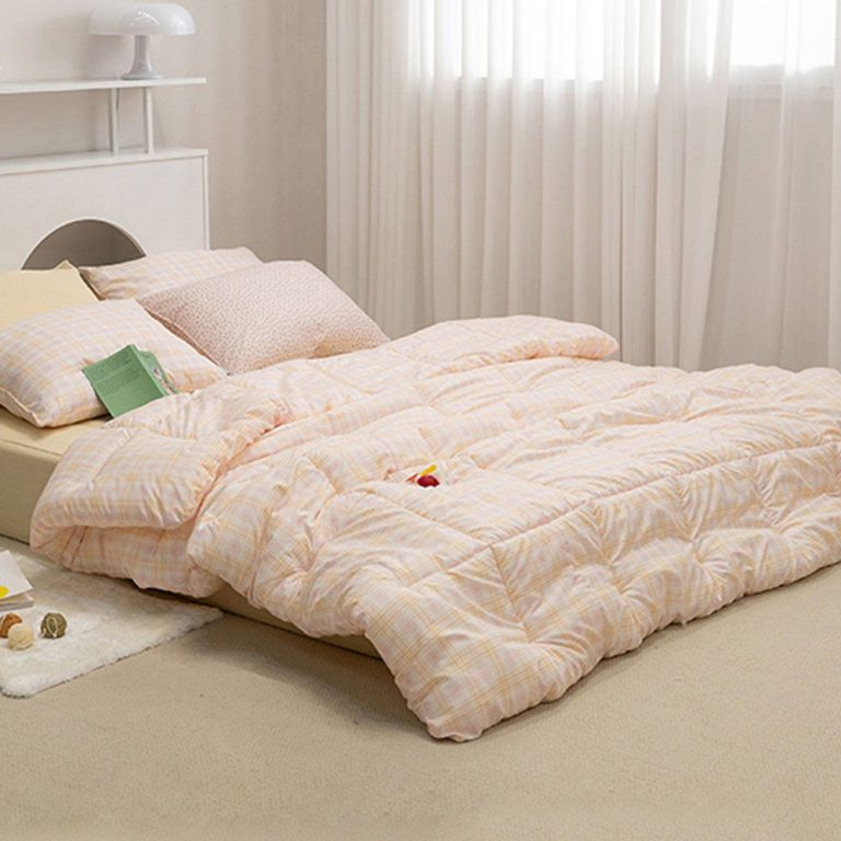 핑크오렌지 체크 슈퍼싱글 차렵 이불 베개커버 세트