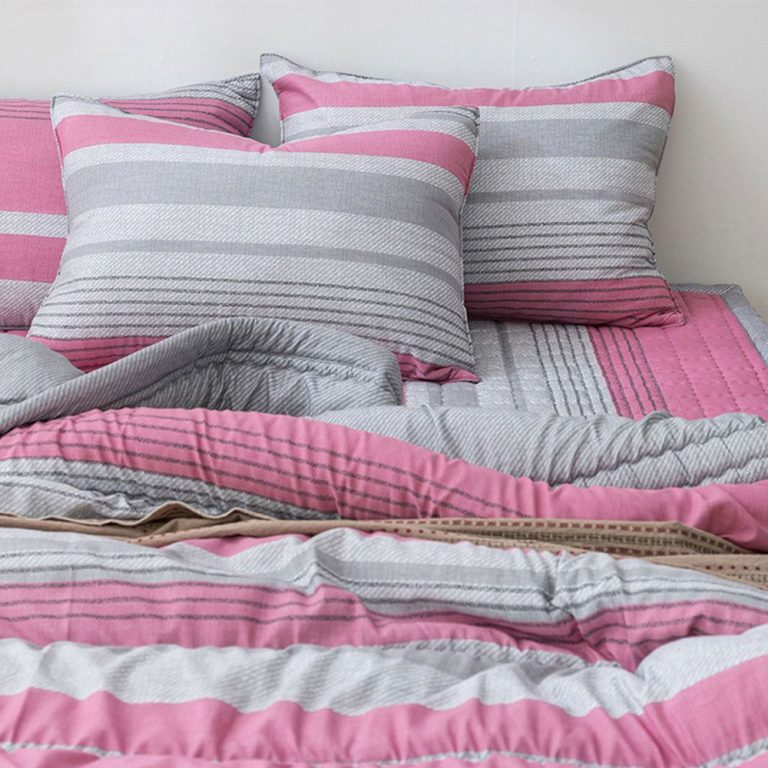 핑크 포인트라인 슈퍼싱글 차렵 이불 베개커버 세트
