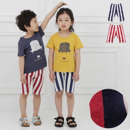아동 세로줄 면스판5부레깅스