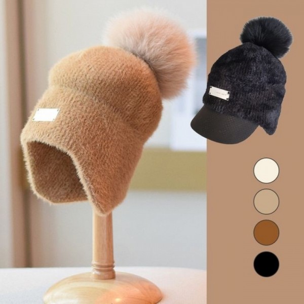 퍼방울 앙고라 비니 귀도리 모자 스키 골프 등산