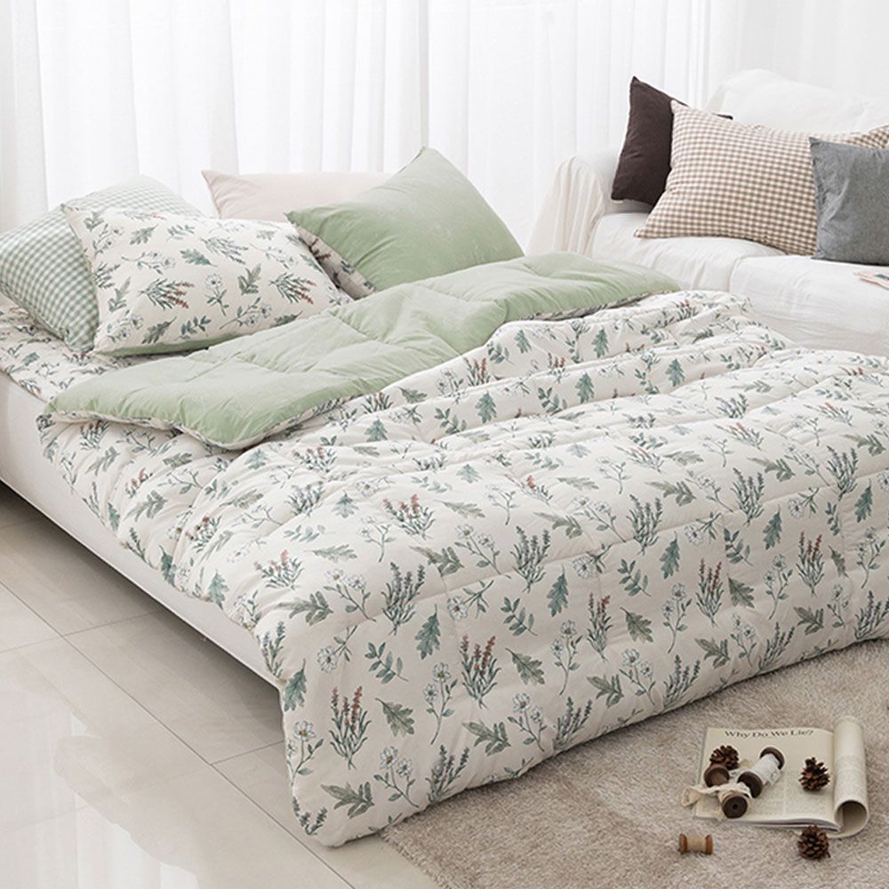 베이지 플로럴 슈퍼싱글 차렵 이불 베개커버 세트