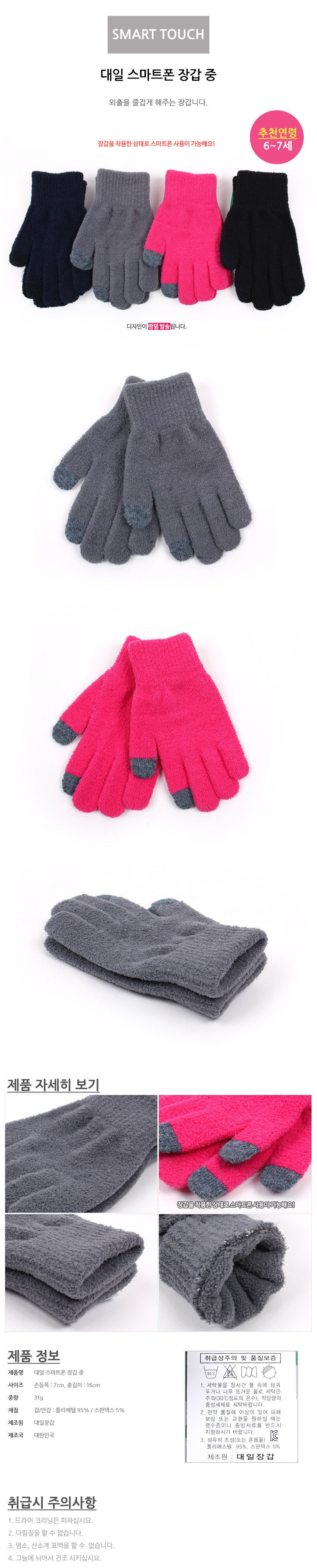 대일 스마트폰 장갑 중 (선택) 니트 겨울 아동 6-7세