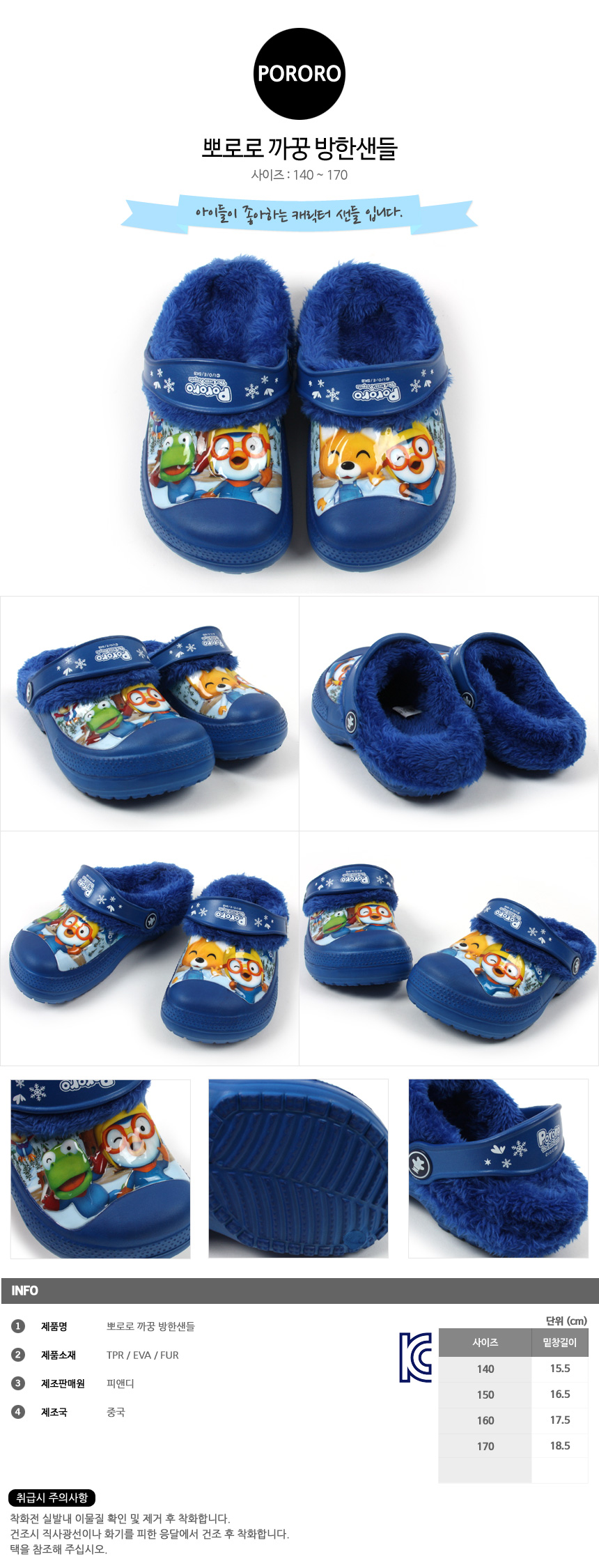 뽀로로 까꿍 방한샌들 캐릭터 남아동 겨울실내화 털신