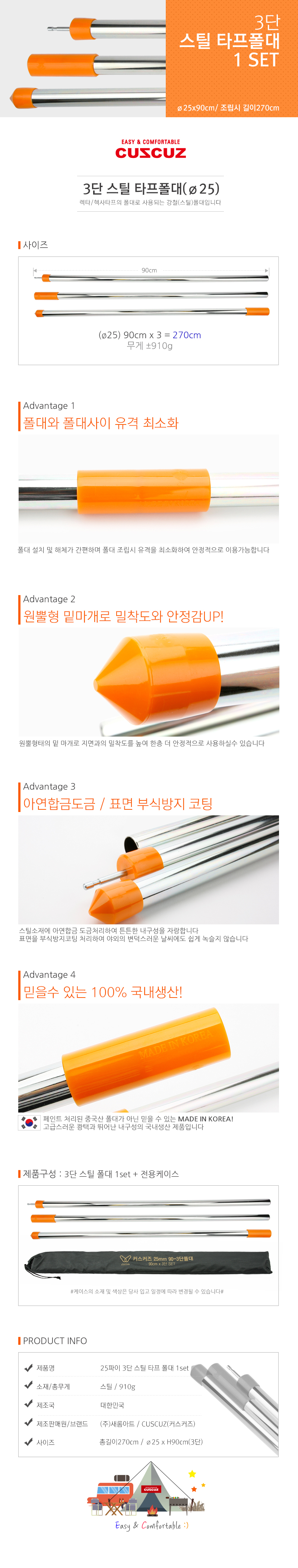 커스커즈 3단 스틸 타프 폴대 1set