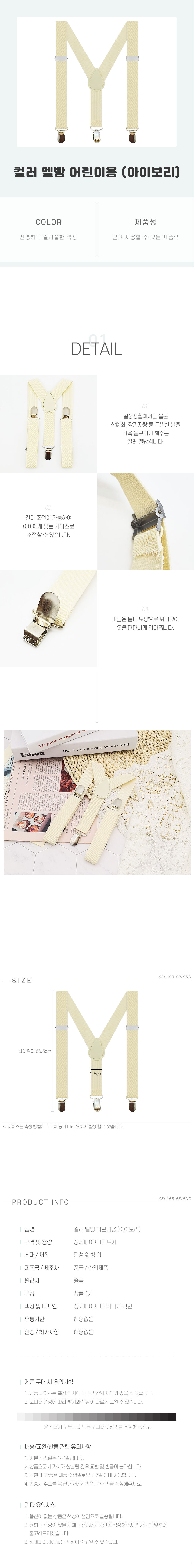 컬러 멜빵 어린이용 아이보리