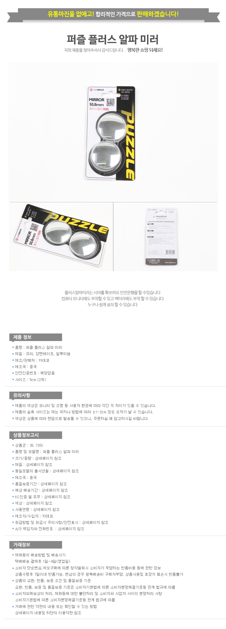 “퍼즐 플러스 알파 미러 사이드미러 플라스알파미러”의 첫 상품평을 남겨 주세요