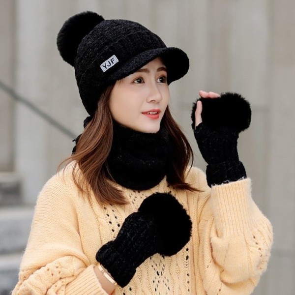 YJK 방울 모자 넥워머 장갑 세트 겨울 방한 털 니트